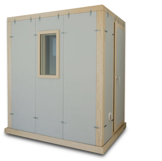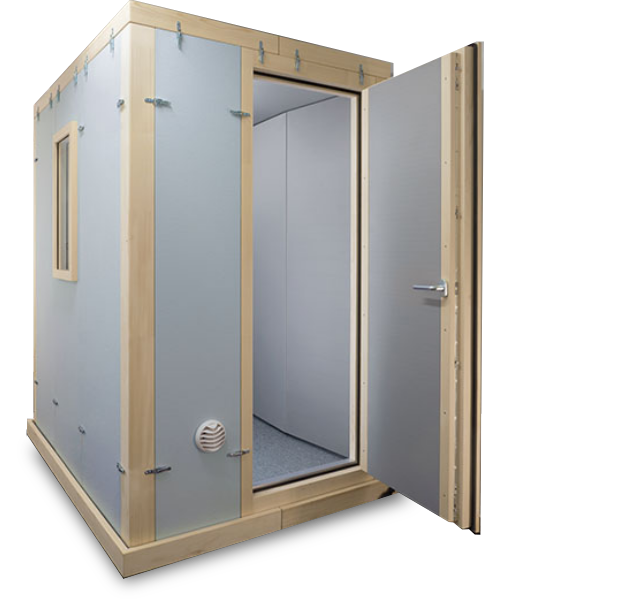 Reflexionsgeminderter Raum mit linearer Innenakustik. Die Lösung für Aufnahmen und Messungen in Forschung und Entwicklung. Hörraum und Abhörraum zur Prüfung von Signalen sowie zur Softwareentwicklung. Akustikkabine für Broadcast + TV, Tonstudios, Mixing und Mastering.