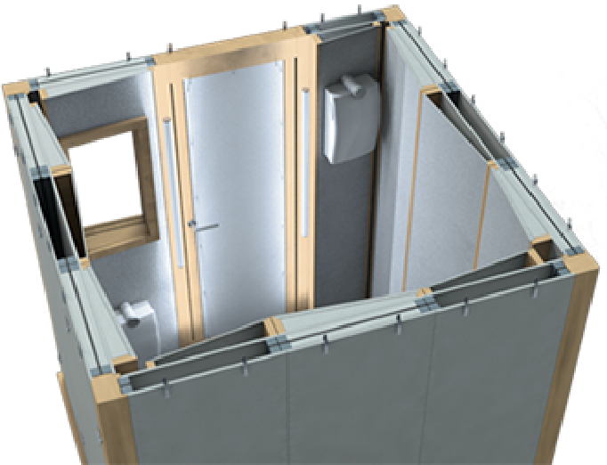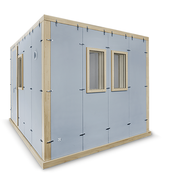 Reflexionsgeminderter Raum mit linearer Innenakustik. Die Lösung für Aufnahmen und Messungen in Forschung und Entwicklung. Hörraum und Abhörraum zur Prüfung von Signalen sowie zur Softwareentwicklung. Akustikkabine für Broadcast + TV, Tonstudios, Mixing und Mastering.