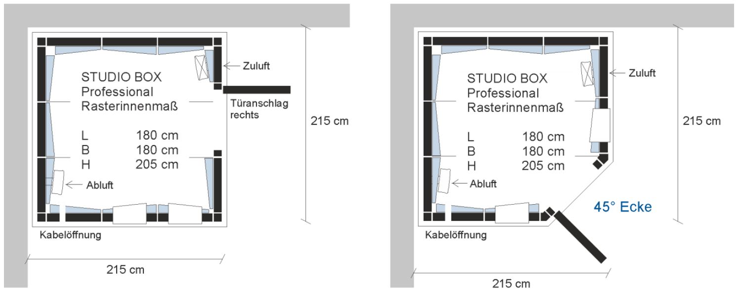 Beispiele einer STUDIOBOX 180 cm x 180 cm (Raster-Innenmaß)